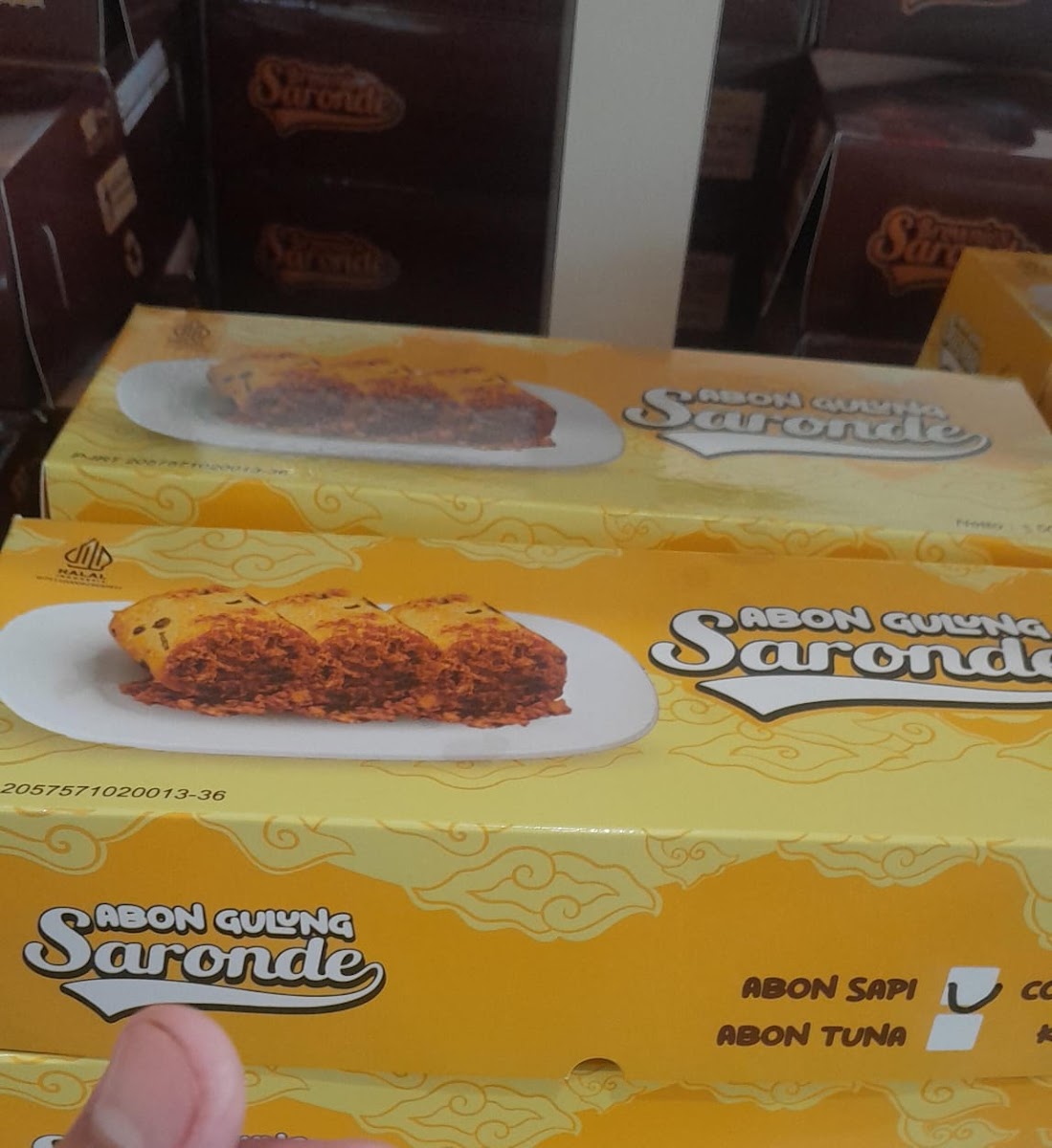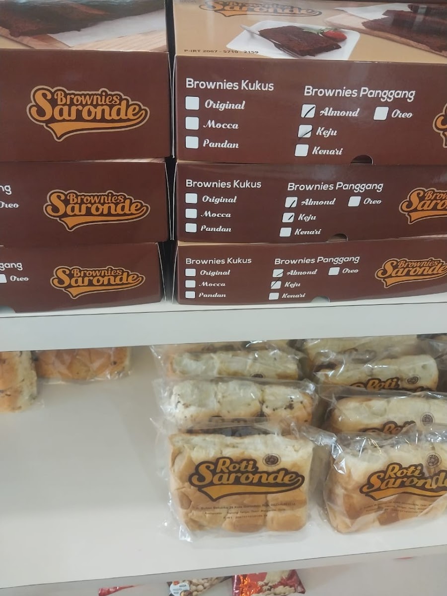 Alongside baked goods, the menu offers options for beverages such as Kopi Jo Saronde, a local coffee specialty. The available products also include other local snacks like chips and packaged fish chili sauce, catering mainly to quick purchases and take-home souvenirs.